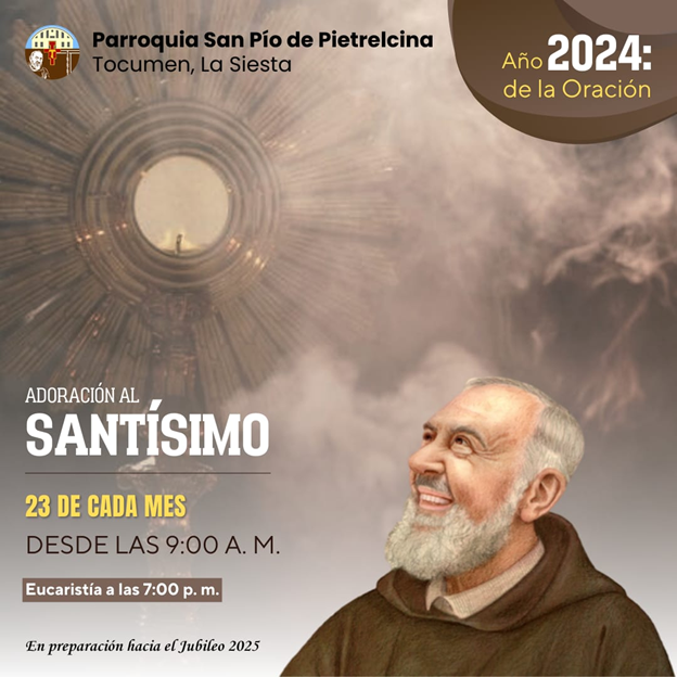 Te invitamos a unirte a nosotros en un momento especial de Adoración a Jesús Sacramentado, siguiendo el ejemplo de profunda fe del Padre Pío.