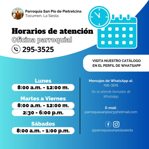 Estamos aquí para servirte en tus trámites, consultas y necesidades: certificados de bautismo, confirmación, intenciones de misa, y orientación general.